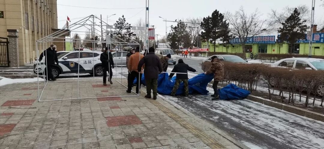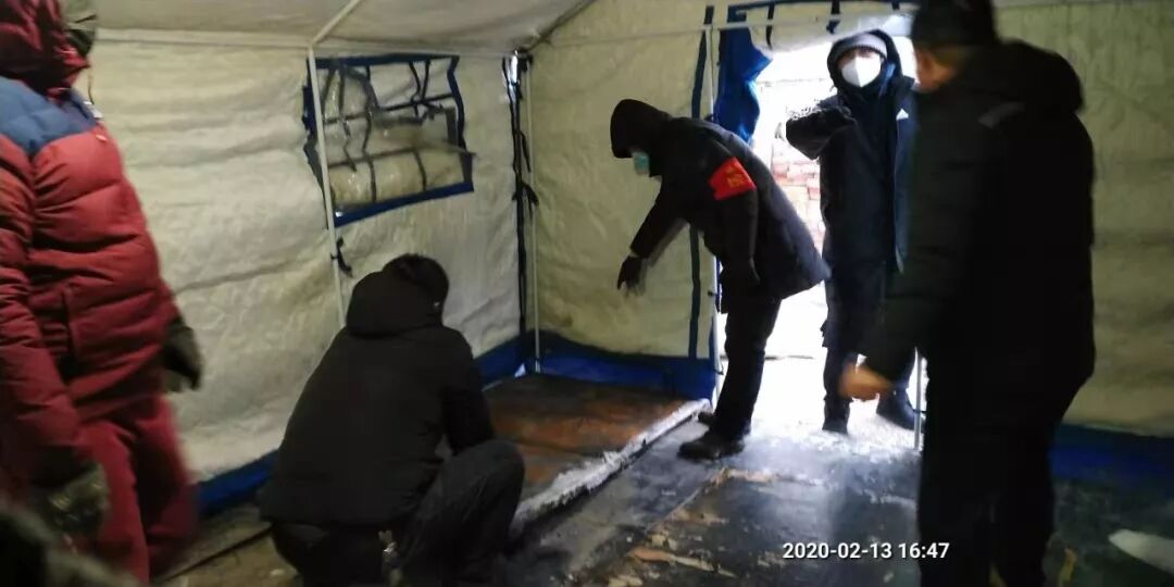 说干就干,我们防疫执勤的干警为自己搭建一个临时的家。