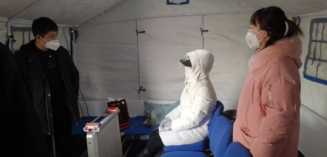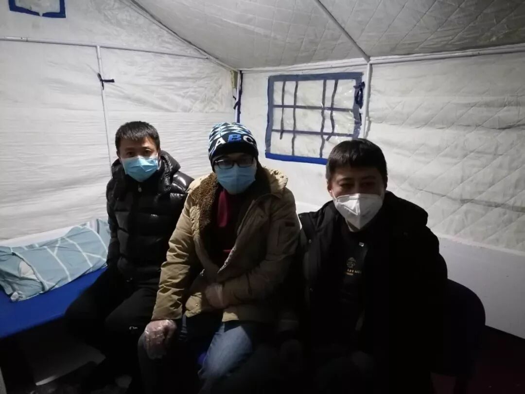 王冬梅代院长(中)帮我们备上电暖气,帐篷里温暖了