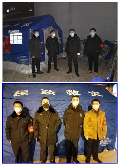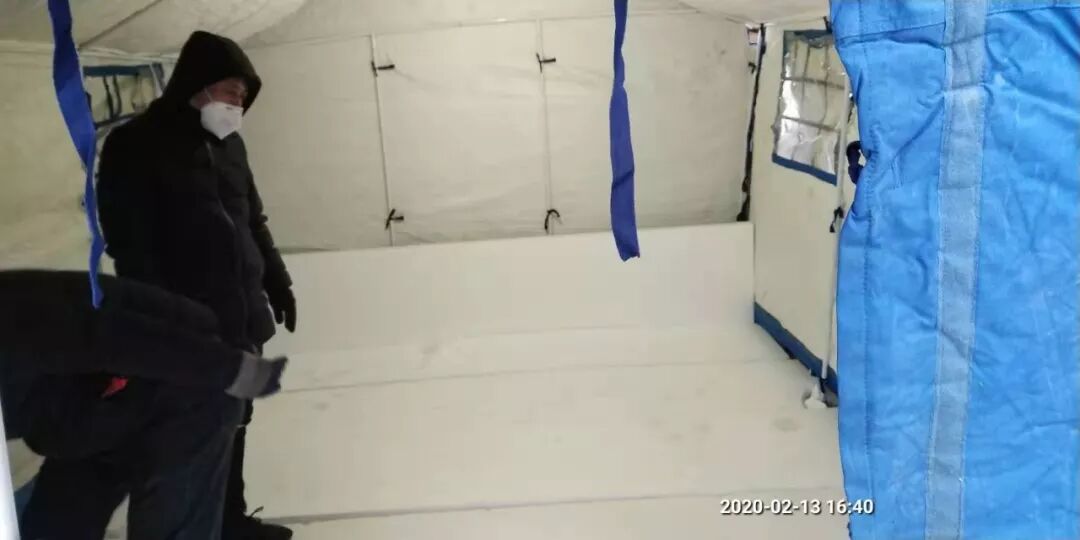 在院领导的协调下,感谢县住建部门为我们提供的帐篷。