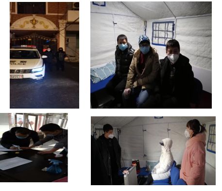 2月24日,寒潮来袭,夜里温度下降,并伴随有大风和大雪。在这样的天气情况下,全院执勤干警依然坚守在各自的执勤点,进行体温测量和小区的管控工作。大雪的夜晚,天特别的冷,即使有厚重的防寒服依然冻得瑟瑟发抖。好在有临时搭建的防寒帐篷,可以遮挡风雪。暖心的群众送来了口罩、热水等必备的物资,让寒冷的夜晚多了一丝温情。