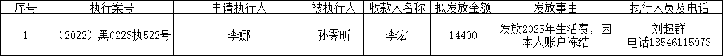 为进一步加强执行案款管理,规范执行案款发放程序,保障当事人合法权益,防范廉政风险,根据《最高人民法院关于执行款物管理工作的规定》等相关规定要求,现对以下案款发放事宜予以公示公示期为七个自然日(2025年10月29日至11月6日)。案件当事人或其他利害关系如有异议,应当在公示期内向执行人员提交书面意见及相关佐证材料。公示期满无异议的,本院将按照执行案款管理规定办理案款发放。