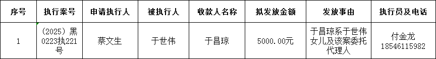 依安县人民法院关于向案外人发放执行款信息的公示