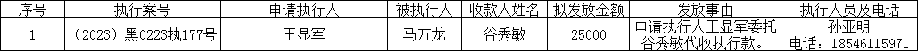 为进一步加强执行案款管理,规范执行案款发放程序,保障当事人合法权益,防范廉政风险,根据《最高人民法院关于执行款物管理工作的规定》等相关规定要求,现对以下案款发放事宜予以公示公示期为七个自然日(2025年12月11日至12月18日)。案件当事人或其他利害关系如有异议,应当在公示期内向执行人员提交书面意见及相关佐证材料。公示期满无异议的,本院将按照执行案款管理规定办理案款发放。