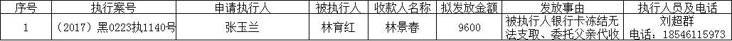 为进一步加强执行案款管理,规范执行案款发放程序,保障当事人合法权益,防范廉政风险,根据《最高人民法院关于执行款物管理工作的规定》等相关规定要求,现对以下案款发放事宜予以公示公示期为七个自然日(2026年1月9日至1月15日)。案件当事人或其他利害关系如有异议,应当在公示期内向执行人员提交书面意见及相关佐证材料。公示期满无异议的,本院将按照执行案款管理规定办理案款发放。