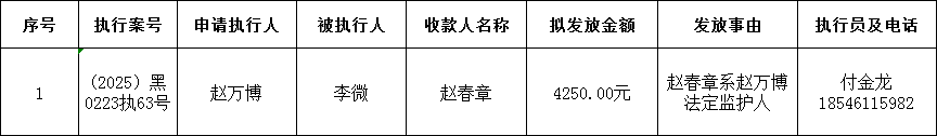 为进一步加强执行案款管理,规范执行案款发放程序,保障当事人合法权益,防范廉政风险,根据《最高人民法院关于执行款物管理工作的规定》等相关规定要求,现对以下案款发放事宜予以公示公示期为七个自然日(2025年1月14日至2025年1月21日)。案件当事人或其他利害关系如有异议,应当在公示期内向执行人员提交书面意见及相关佐证材料。公示期满无异议的,本院将按照执行案款管理规定办理案款发放。