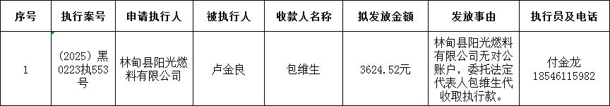 为进一步加强执行案款管理,规范执行案款发放程序,保障当事人合法权益,防范廉政风险,根据《最高人民法院关于执行款物管理工作的规定》等相关规定要求,现对以下案款发放事宜予以公示公示期为七个自然日(2025年5月26日至2025年6月2日)。案件当事人或其他利害关系如有异议,应当在公示期内向执行人员提交书面意见及相关佐证材料。公示期满无异议的,本院将按照执行案款管理规定办理案款发放。