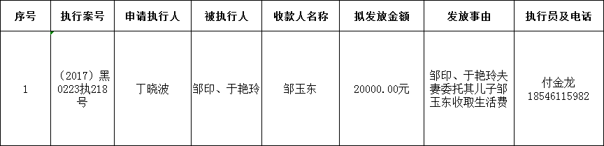 为进一步加强执行案款管理,规范执行案款发放程序,保障当事人合法权益,防范廉政风险,根据《最高人民法院关于执行款物管理工作的规定》等相关规定要求,现对以下案款发放事宜予以公示公示期为七个自然日(2026年1月20日至2026年1月27日)。案件当事人或其他利害关系如有异议,应当在公示期内向执行人员提交书面意见及相关佐证材料。公示期满无异议的,本院将按照执行案款管理规定办理案款发放。
